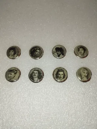 8 Spille Attrici Famose In Metallo Anni 50 Le attrici sono: -Maureen O'Hara -Grace Kelly -Rita Hayworth -Dany Robin -Michele Morgan - Ingrid Bergmann - Brigitte Bardot - Gina Lollobrigida Diametro spille 2,5 cm circa Rare Condizioni: in buone condizioni con i normali segni del tempo.Con segnetti.Quello che vedete in foto è quello che riceverete