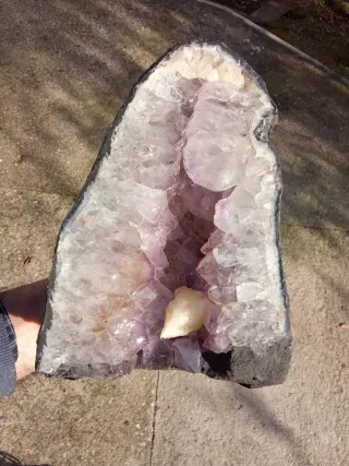 Bellissima geode di ametista con calcite perfetta per collezionisti o come elemento decorativo. Provenienza Brasile - Cristalli viola intenso. - Base naturale grezza.