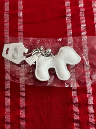 Portachiavi a forma di cane, un accessorio carino e luminoso. - Colore bianco. - Dettagli con strass scintillanti. - Completo di nappina e campanellino. misura 8 cm