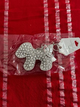 Portachiavi a forma di cane decorato con strass scintillanti. - Design a forma di cane. - Decorazione con strass. - Include un moschettone per agganciarlo - Misura 8 cm circa