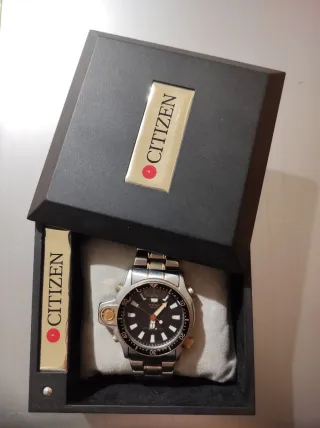 Vendo Citizen NY0145 automatico. In ottime condizioni estetiche e funzionali. Cassa 44mm esclusa corona. Bracciale originale per polsi max 18cm , purtroppo non ho piú le maglie aggiuntive. Regalo cinturino in nylon verde militare . Full set