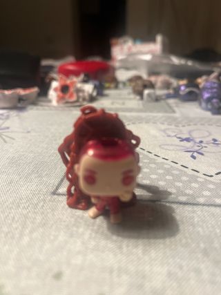 Personaggio Kinder Joy della serie Stranger Things. Un piccolo collezionabile per gli appassionati. - Dettagli rossi sul vestito. - Capelli rossi. - Design stilizzato tipico dei personaggi Funko Pop.