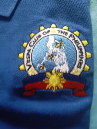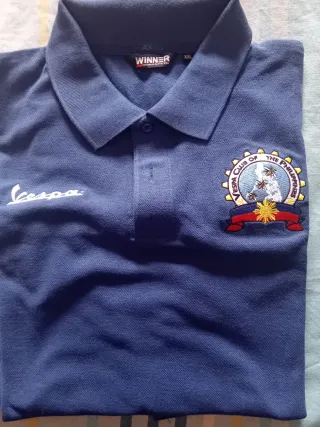 Maglietta polo blu da uomo, taglia XXL, del Vespa Club of the Philippines. - Logo Vespa ricamato sul petto a sinistra. - Stemma del Vespa Club of the Philippines sul petto a destra. - Colletto a polo con chiusura a bottoni. - Marca: Winner.