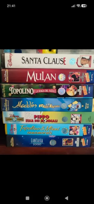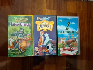 Vendo lotto di 9 videocassette VHS. Le cassette sono in buone condizioni estetiche e complete di custodia originale. Il lotto comprende I Grandi Classici Disney: Gli Aristogatti, Il Libro della Giungla, Pocahontas, Atlantis - L'impero perduto. Serie e Speciali: I Gummi's (Il vendicatore rosso), Tiny Toon Adventures, L'Uomo Ragno (La vendetta di Loki). Altri film d'animazione: Z la Formica (DreamWorks), La Freccia Azzurra.