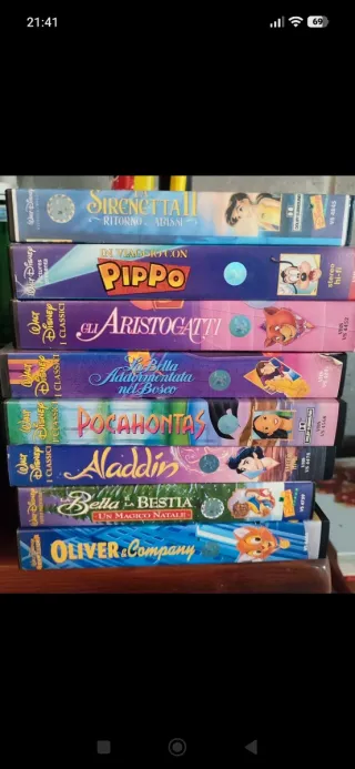 A 5€ l'una. Collezione di VHS Disney Classici originali. - La Sirenetta II: Ritorno agli Abissi - In Viaggio con Pippo - Gli Aristogatti - La Bella Addormentata nel Bosco - Pocahontas - Aladdin - La Bella e la Bestia: Un Magico Natale - Oliver & Company