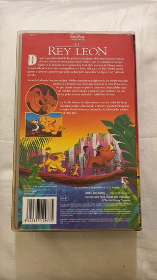 Film classico Disney, Il Re Leone, in formato VHS. Edizione in spagnolo. Per gli appassionati di oggetti retrò e collezionisti di Walt Disney.