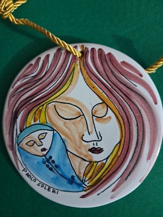 Bellissime formelle in ceramica, raffiguranti immagini natalizie, realizzate nel 2003 dall'artista Paolo Soleri. Sono perfette per decorare l'albero di Natale o come bomboniere. - Dipinte a mano - Motivi natalizi - Ceramica di qualità - Ottime condizioni - Dimensioni: circa 8 cm di diametro