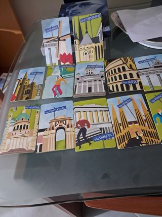 Bellissimo set di 12 carte da collezione "La Città dell'Euro", in ottime condizioni. Ogni carta raffigura una città europea. Perfette per collezionisti o appassionati di geografia. - 12 carte in totale - Tematica: città europee - Ottimo stato di conservazione