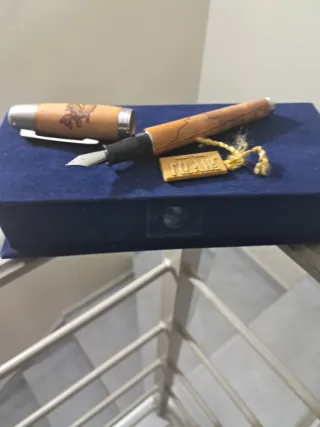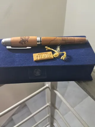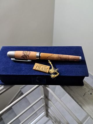 Elegante penna stilografica 1 Classe, realizzata in legno con un design a mappa. - Finitura in legno naturale. - Dettaglio mappa inciso sul fusto. - Clip in metallo argentato.Bisogna cambiare la cartuccia