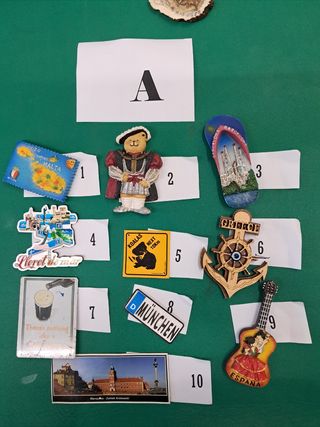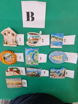 Lotto di magneti souvenir da vari luoghi. - Magnete con mappa di Malta. - Magnete con orso e scritta Koalas Next 10km. - Magnete a forma di infradito con Sagrada Familia (Barcellona). - Magnete con scritta Llorret de Mar. - Magnete con scritta München. - Magnete con chitarra e scritta España. - Magnete con ancora e scritta Greece. - Magnete con orso in abito storico. - Magnete con bicchiere di birra e scritta There's nothing like a.... - Cartolina con panorama di Varsavia. - Magnete con panorama di Varsavia.Il lotto si vende anche separatamente