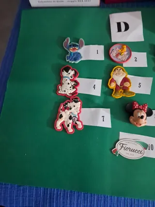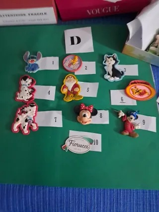 Lotto di magneti con vari personaggi. - Magnete di Stitch. - Magnete di Biancaneve e i Sette Nani (Dotto). - Magnete di un gatto nero e bianco. - Magnete di Paperino. - Magnete di Minnie. - Magnete di Topolino con cappello da mago. - Magnete dei dalmata. - Magnete del logo Fiorucci. - Magnete di Winnie the Pooh.