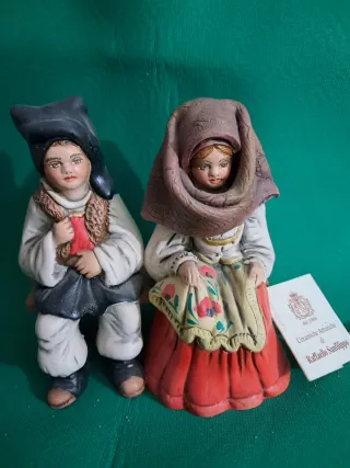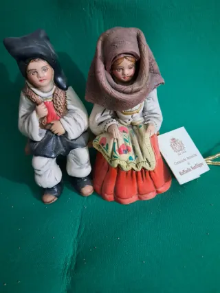 Statuina in ceramica artistica, raffiguranti una coppia in abiti tradizionali. - Realizzate da Raffaello Sanfilippo. - Dettagli curati e colorati. - Ideali per collezionisti.