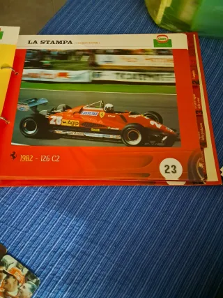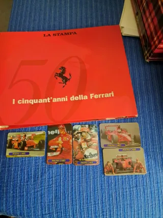 Album I cinquant'anni della Ferrari de La Stampa con 5 schede telefoniche. - Album celebrativo dei 50 anni della Ferrari. - Include 5 schede telefoniche con immagini di auto e piloti Ferrari.
