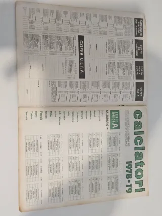 Album vuoto dei Calciatori Panini edizione 1979/80 con qualche scritta - Copertina con giocatori in azione. - Logo Italia. - Serie A, B, C1, C2. - Emblemi squadre calcio.
