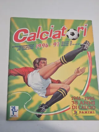 Album vuoto Panini Calciatori 1996-97 con cedola non compilata!! - Copertina con disegno di un calciatore in azione. - Edizione del campionato italiano di calcio 1996-97. - Include le serie A, B, C1-C2. - Celebra 35 anni di calcio dal 1961 al 1996.
