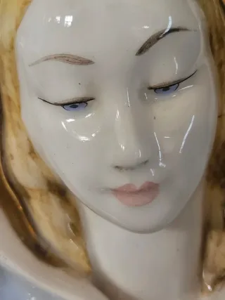 Deliziosa statuetta porcellana Capodimonte raffigurante una bambina con un'acconciatura raccolta. La base è di colore bianco con un inserto centrale dorato - Design classico. - Dettagli curati. - Misure 15*8*6