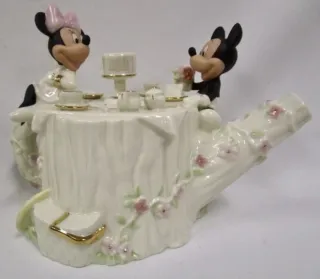 Deliziosa teiera a tema Topolino e Minnie, perfetta per gli amanti dei personaggi Disney. Un pezzo unico per la tua collezione Disney - Design ispirato a una scena da tè con i personaggi. - Dettagli floreali e dorati sul servizio da tè. - Realizzata in porcellana Lenox.