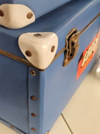 (PREZZO CADAUNA) Set di scatole vintage Lego System. Perfette per collezionisti o per conservare i propri mattoncini. - Scatole in colore blu. - Dettagli con angoli rinforzati in metallo. - Chiusure a scatto in metallo.