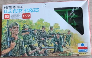 Set di soldatini U.S. Elite Forces della ESCI, ambientato durante la Guerra del Vietnam. - Scala 1/72. - 50 figure non dipinte. - Made in Italy.