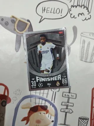 Carta collezionabile di Vinícius Júnior, edizione Finisher. - Giocatore: Vinícius Jr. - Squadra: Real Madrid - Punti: Difesa 30, Attacco 86 - Valore: 8.5M - Serie: Topps 153