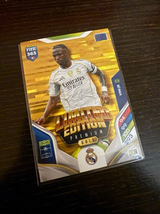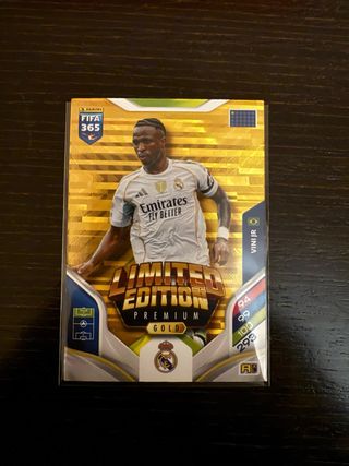 Carta da collezione Panini FIFA 365 di Vini Jr. Edizione Limitata Premium Gold. - Giocatore: Vini Jr. - Edizione: Edizione Limitata Premium Gold - Serie: FIFA 365 - Marca: Panini - Include statistiche: 94, 99, 100, 293