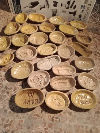 Set di quattro oggetti decorativi in terracotta. - Pezzi unici con finiture artigianali. - Ideali per aggiungere un tocco rustico alla tua casa.