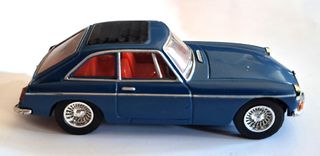 Modellino da collezione della MGB GT del 1965. - Scala 1:43. - Colore blu. - Interni rossi. - Tetto apribile.