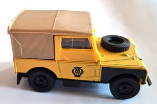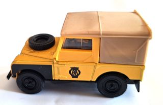 Modellino del Land Rover Series 1 del 1949 in scala 1:43. - Colore giallo e nero. - Tetto in tela beige. - Ruota di scorta sul cofano.