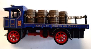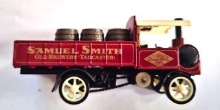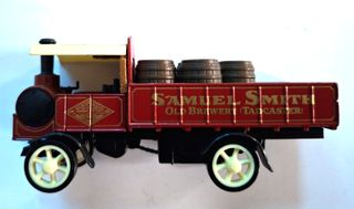 Modellino del camioncino Matchbox Models Of Yesteryear Y32 1917 Yorkshire. - sc.1:60 - Camioncino in metallo con finiture rosse e dorate. - Carico composto da tre botti. - Dettagli Samuel Smith Old Brewery (Tadcaster) stampati sulla fiancata.