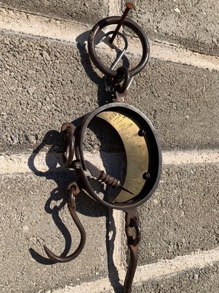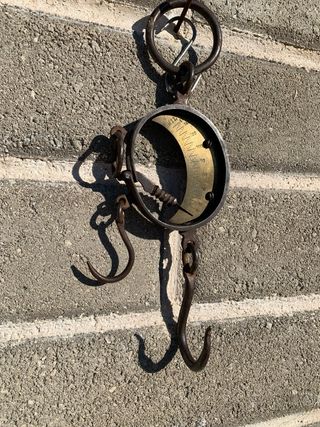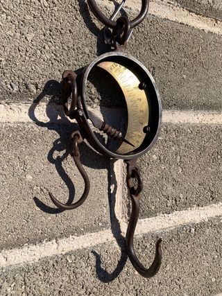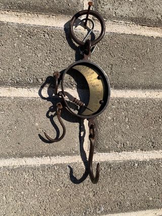 Bilancia antica in metallo, un pezzo da collezione introvabile. - Quadrante con scala graduata. - Ganci in metallo. - Design vintage.