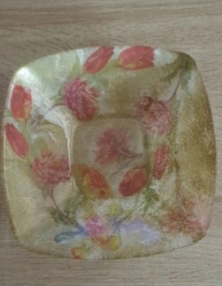 Bellissimo svuota tasche in vetro di Murano con decorazioni floreali e filamenti dorati. Si presenta in ottime condizioni. - Realizzato in vetro di Murano. - Decorazioni floreali. - Filamenti dorati.