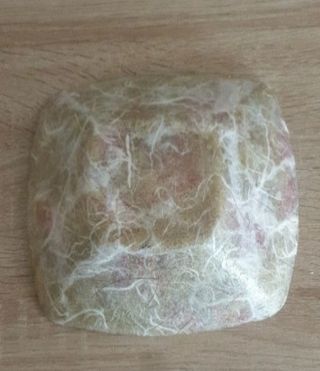 Scatoletta porta caramelle o gioielli in Teck. Il coperchio ha una piccola rottura facilmente riparabile