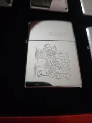 Accendino Zippo con design Eagle & American Flag. Usato pochissimo. Come nuovo - Since 1932 inciso. - Logo Zippo presente.