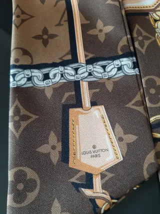 Bandeau monogram di Louis Vuitton - La stampa raffigura catenelle, tracolle e lucchetti su uno sfondo con iconico motivo della Maison. - senza etichette - Pura seta - Lunghezza cm.103 - Larghezza cm. 8