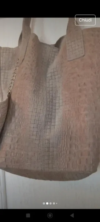 Borsa in vera pelle con un pratico portamonete abbinato. - Materiale: Vera pelle. - Dettaglio: Texture effetto coccodrillo. - Accessorio: Portamonete agganciato con catenella.