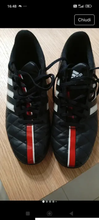 Scarpe da calcio Adidas. - Design trapuntato. - Dettagli a righe rosse e bianche.