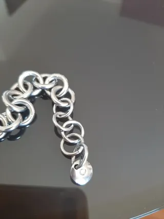 Elegante bracciale a catena con un ciondolo a forma di cuore impreziosito da strass. - Design a maglie larghe. - Ciondolo a cuore con pavé di cristalli. - Chiusura a moschettone. - Con scatola ma non la sua originale - Non ricordo la marca. - Lunghezza cm.22