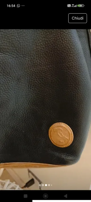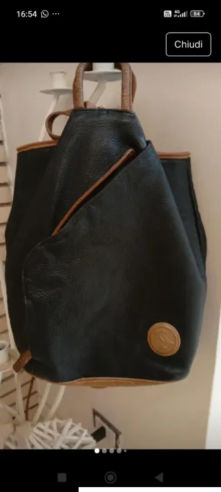 Zainetto vintage in pelle, con un design unico e pratico. - Materiale: Pelle Fiorentina - Dettagli: Inserti in pelle marrone - Chiusura: Zip - Tasca esterna con logo - Spallacci regolabili.Zip sul retro antifurto.Lo zainetto è in buone condizioni generali ,ha solo il bordo in pelle un po' vissuto ,come da foto.Interno foderato,zip perfettamente funzionanti.Misura 24 x 32.