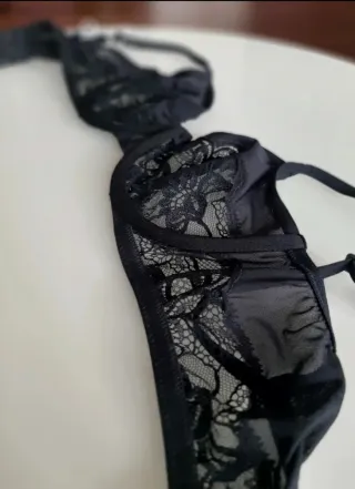 Elegante reggiseno in pizzo nero. - Dettagli in pizzo delicato e pregiato, floreale. - Spalline regolabili. - Chiusura posteriore. - taglia 1C italiana - Con ferretto - Prezzo originale franchi svizzeri 419, prezzo Outlet franchi 252.