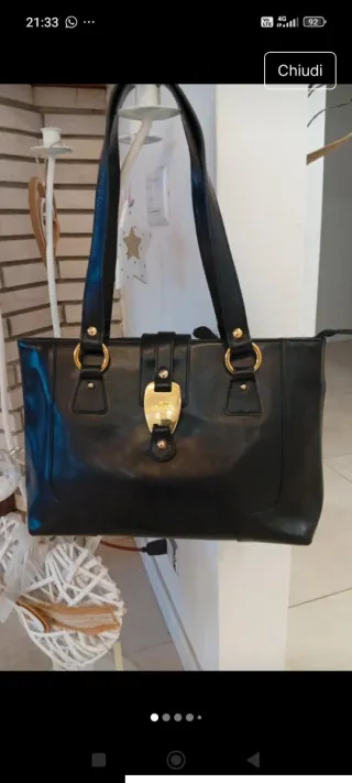Elegante borsa in vera pelle, nuova. - Colore nero. - Materiale: vera pelle. - Dettagli dorati.Misura 35 x 24.Modello elegante , classico ,per una donna di classe
