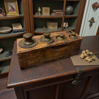 Plumier antiguo de piedra natural, probablemente esteatita, pesado y frío al tacto. Decorado con incrustaciones de nácar grabado con escena de inspiración oriental. Trabajo artesanal, primera mitad del siglo XX (aprox. 1910–1940). Diseñado como estuche para instrumentos de escritura. Buen estado general, con pátina del tiempo. Objeto sobrio y elegante, ideal para coleccionistas o como pieza decorativa con historia.