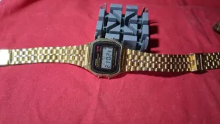 orologio CASIO WR funzionante anni 90, con cinturino originale in simil oro. tutti gli orologi non vengono né lucidato né puliti esternamente per mantenere l'originalità del recupero. starà all'acquirente decidere la pulizia e lucidatura. GLI OGGETTI UNA VOLTA VENDUTI NON SI CAMBIANO / RESTITUISCONO. Oggetto presente in altre piattaforme. Qualsiasi domanda è beneaccetta prima dell'acquisto. LE FOTO SONO PARTE INTEGRANTE DELL'OGGETTO IN VENDITA.Orologio Casio WR con finitura color oro, risalente agli anni '90. - Cassa e cinturino in metallo. - Display digitale. - Funzione allarme e cronometro.