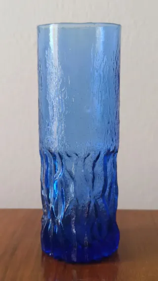 Vasetto o bicchiere in vetro blu cobalto con finitura materica che ricorda la corteccia. - vintage. - Colore blu intenso. - Materiale in vetro. . Piccolo difetto do produzione: sembra una piccola bolla di vetro scoppiata