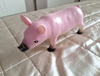 Simpatico maialino rosa, perfetto come giocattolo o oggetto decorativo. - Colore: rosa - Materiale: plastica - Dettagli: muso nero e zampette nere
