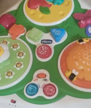 Tavolo multiattività Chicco in ottime condizioni, perfetto per stimolare la curiosità dei più piccoli. - Design colorato e coinvolgente. - Diverse aree interattive con giochi e suoni. - Materiali resistenti e sicuri per bambini.