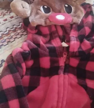 Morbido pigiamone in pile con fantasia a quadri rossi e neri. Il cappuccio è decorato con un simpatico muso da renna con orecchie e naso in rilievo. - Taglia: 12 anni - Materiale: Pile - Fantasia: Quadri