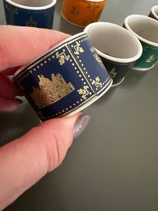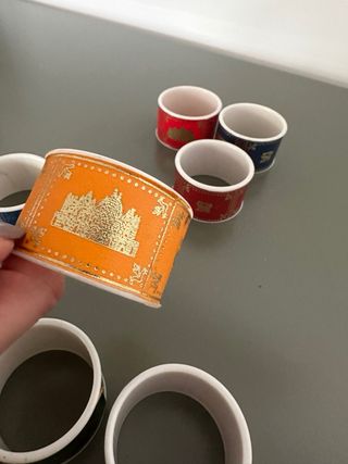 Elegante set di portatovaglioli con decorazioni dorate. Anni ‘70. - 8 pezzi - Finitura blu e oro. - Colori assortiti