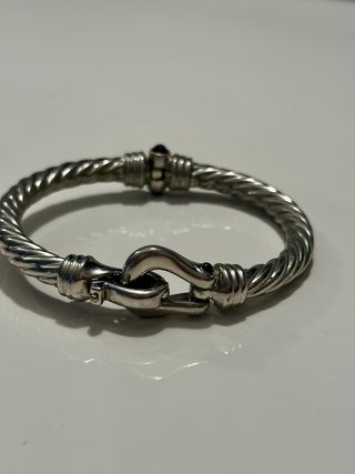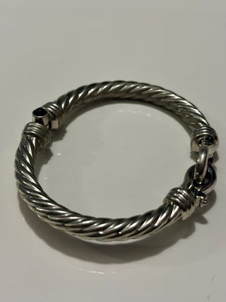Bracciale rigido bangle dalla raffinata lavorazione. Impreziosito da elementi in onice nero. Articolo vintage perfettamente conservato.