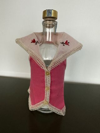 Un grazioso copribottiglia vintage, perfetto per aggiungere un tocco di stile. - Colletto rosa con ricami - Gilet rosa con bottoni. - Lino bianco e rosa - Articolo vintage hand made - Mai usato.