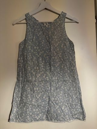 Delicato babydoll in puro cotone con una graziosa fantasia floreale. Perfetto per un look casual e romantico. - Tessuto in cotone leggero. - Design senza maniche. - Lunghezza corta.
